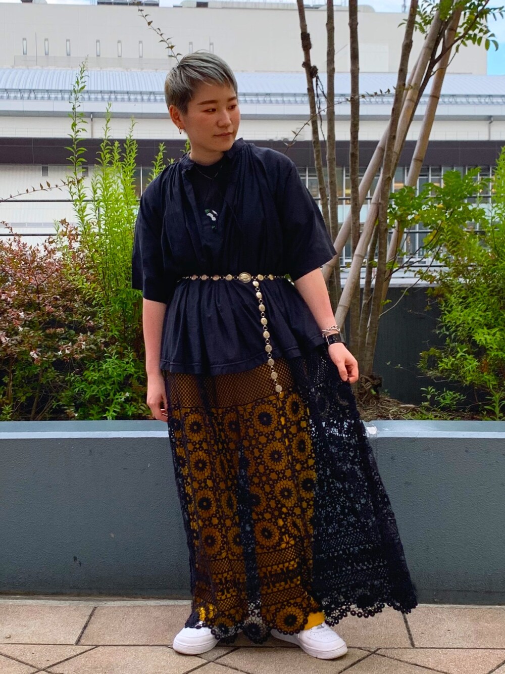 普段あまり着ることがないレースのワンピース⚫ オールブラックに差し色で大好きな色であるYELLOWをプラスしました🍯