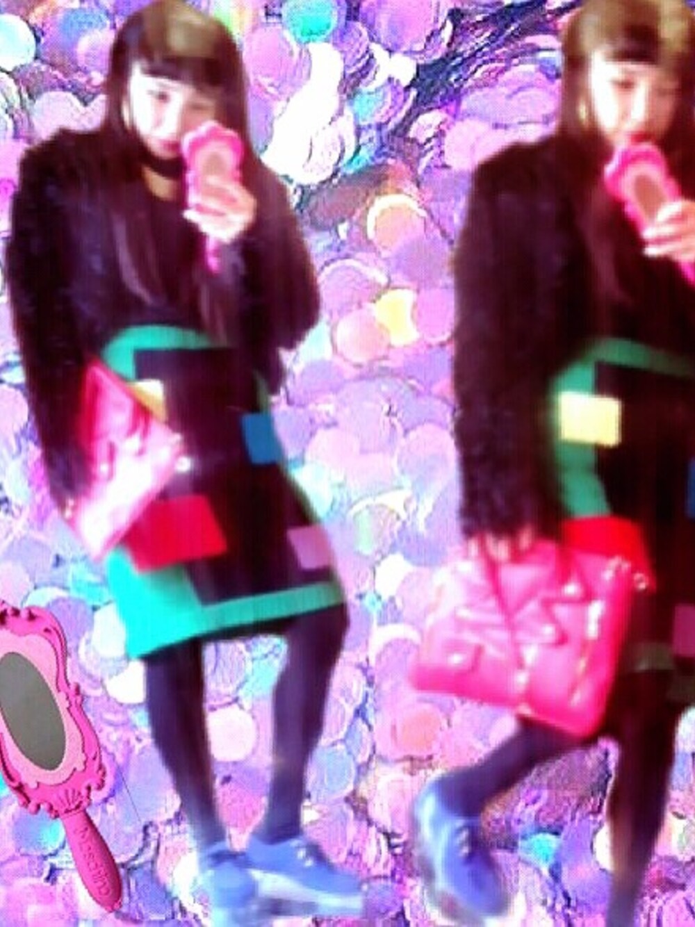 YRU厚底クリアお気に入り レザージャケット風クラッチ BarbieとmoschinoコラボiPhoneケース 前髪こんにちは 光で変な色なってるけど真っ黒です