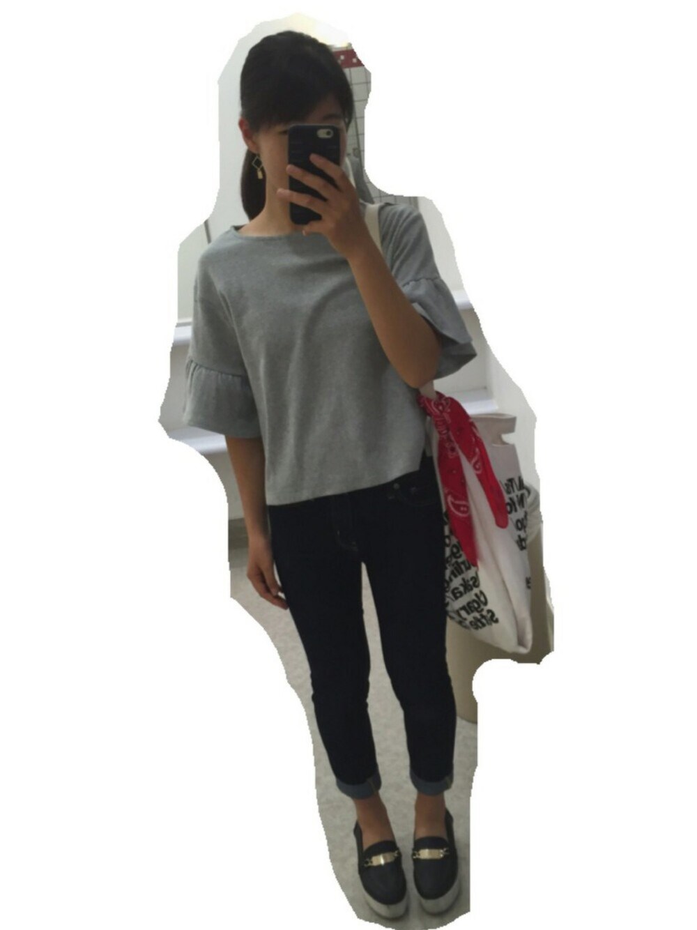 今日は撮りためていたコーデを。 シンプルで面白くないですが笑 トップスはLOWRYSFARMで店員さんが着ていて一目惚れ😳 ボトム、本当はデニムスカートにしたかったけど、自転車漕がないといけないので仕方なくパンツに。。 さすがに寂しすぎたのでDAISOの赤のバンダナをカバンに、 そして!ピアス、誕生日プレゼントで友達の"rino.."からいただきました〜♪