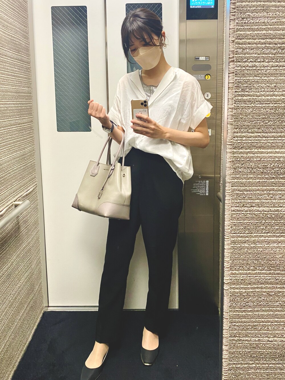 ぽちまるのハンドバッグ「MERCER GALLERY(マーサー・ギャラリー) スモール センタージップ サッチェル」を使ったコーディネート