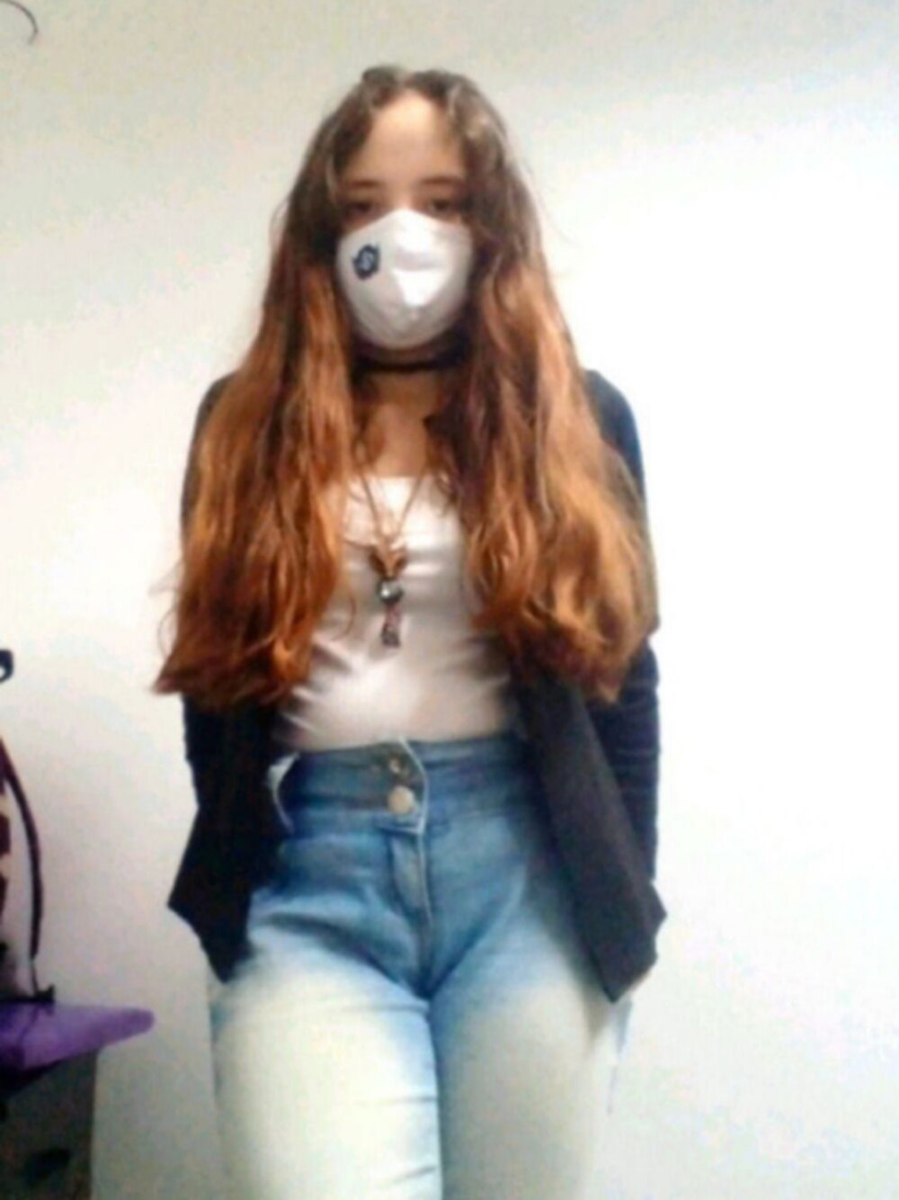 ブルー系のデニムパンツ、ゴールド系のネックレスを着用したレディースの夏コーディネートの1枚目の写真