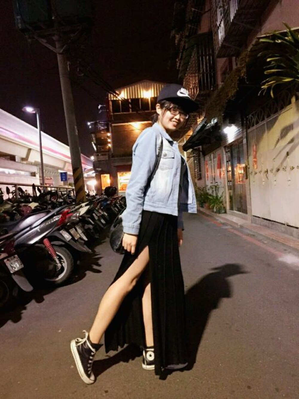 看似低調的黑長裙,其實開了一個衩,讓腿若隱若現,在搭上短版的牛仔外套,拉長我們矮人族的比例唷!