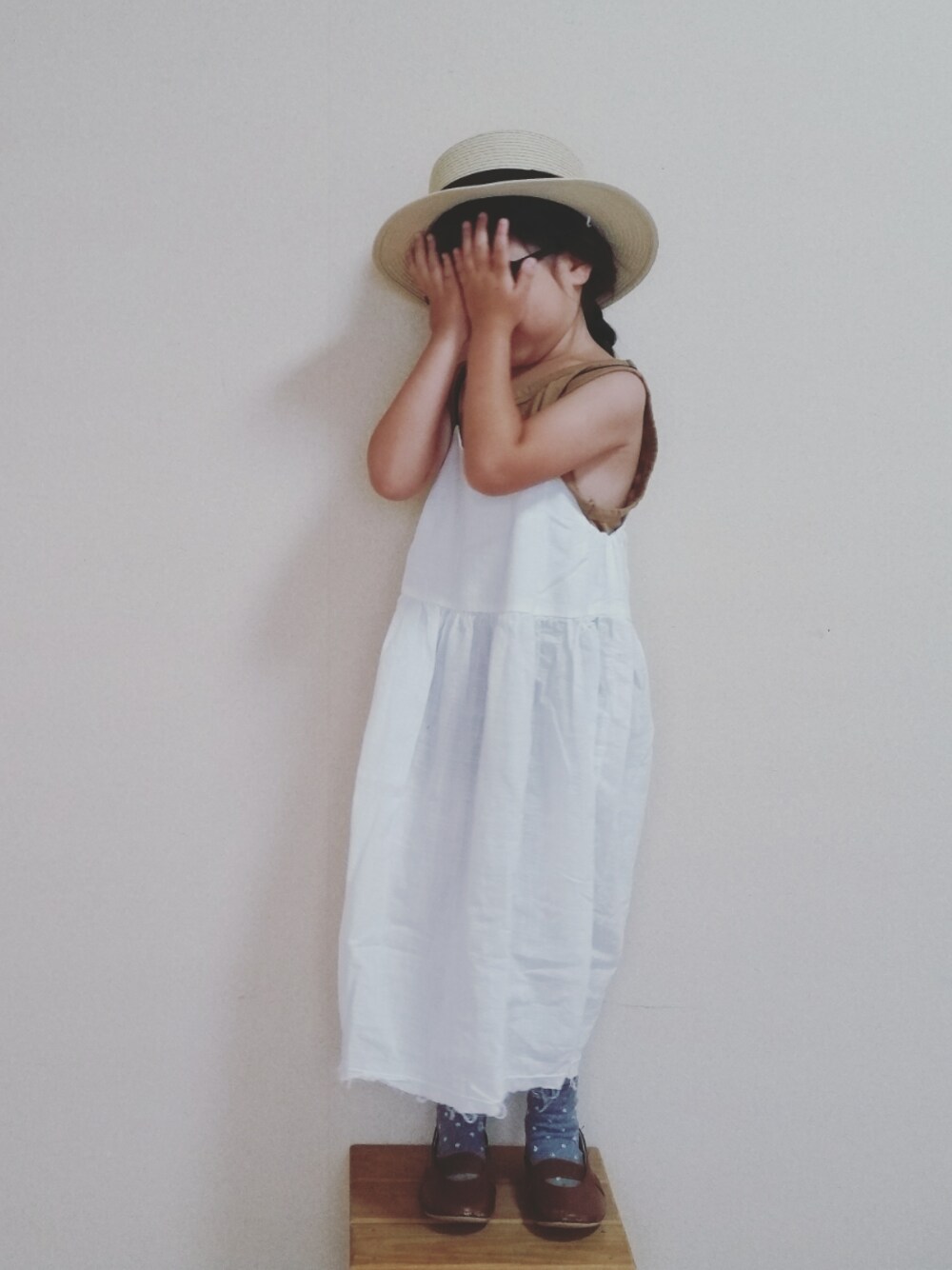 ホワイト系のワンピースを着用したキッズの夏コーディネートの1枚目の写真