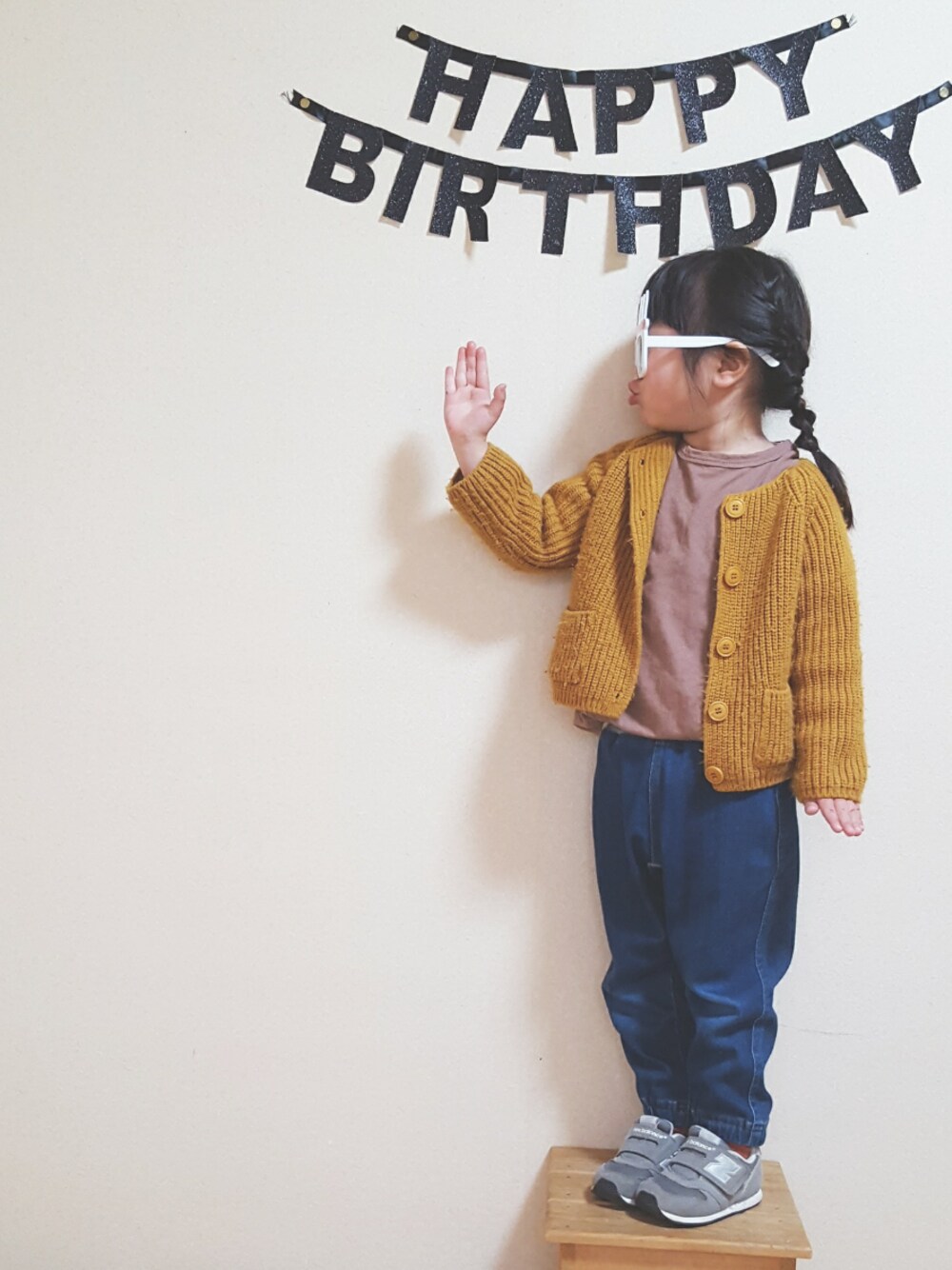 ブルー系のデニムパンツを着用したキッズの春コーディネートの1枚目の写真