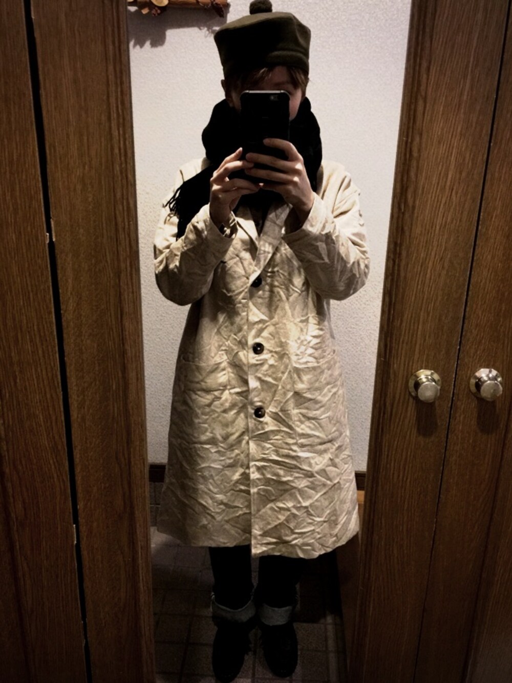 コート皺くちゃに見えますが、こういう加工なんです👵 キョンシー帽子はアウトレットのセールで買いました。 90%OFFだったのでかなり嬉しいです😂💕 ただ、合わせるのが難しくて模索しています… インディゴデニムタグに乗りたかったんですが、全くインディゴ感が無い写真…😇