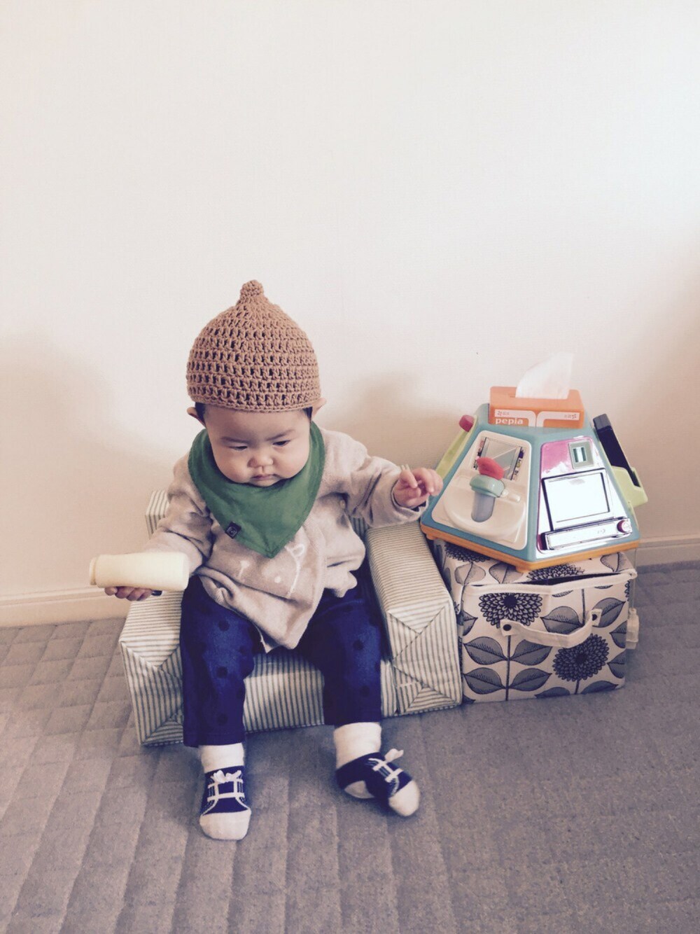どんぐり帽はminneでサイズ・カラーをオーダーして作って貰いました!二代目どんぐり帽です。 デニムは、80sizeの七分丈をあえて買い、現在70sizeのムスメは丈がジャストサイズです(笑)70sizeのベビー服が売ってないので、は80sizeの七分袖、七分丈をよく利用してます (ಡ艸ಡ) プクク