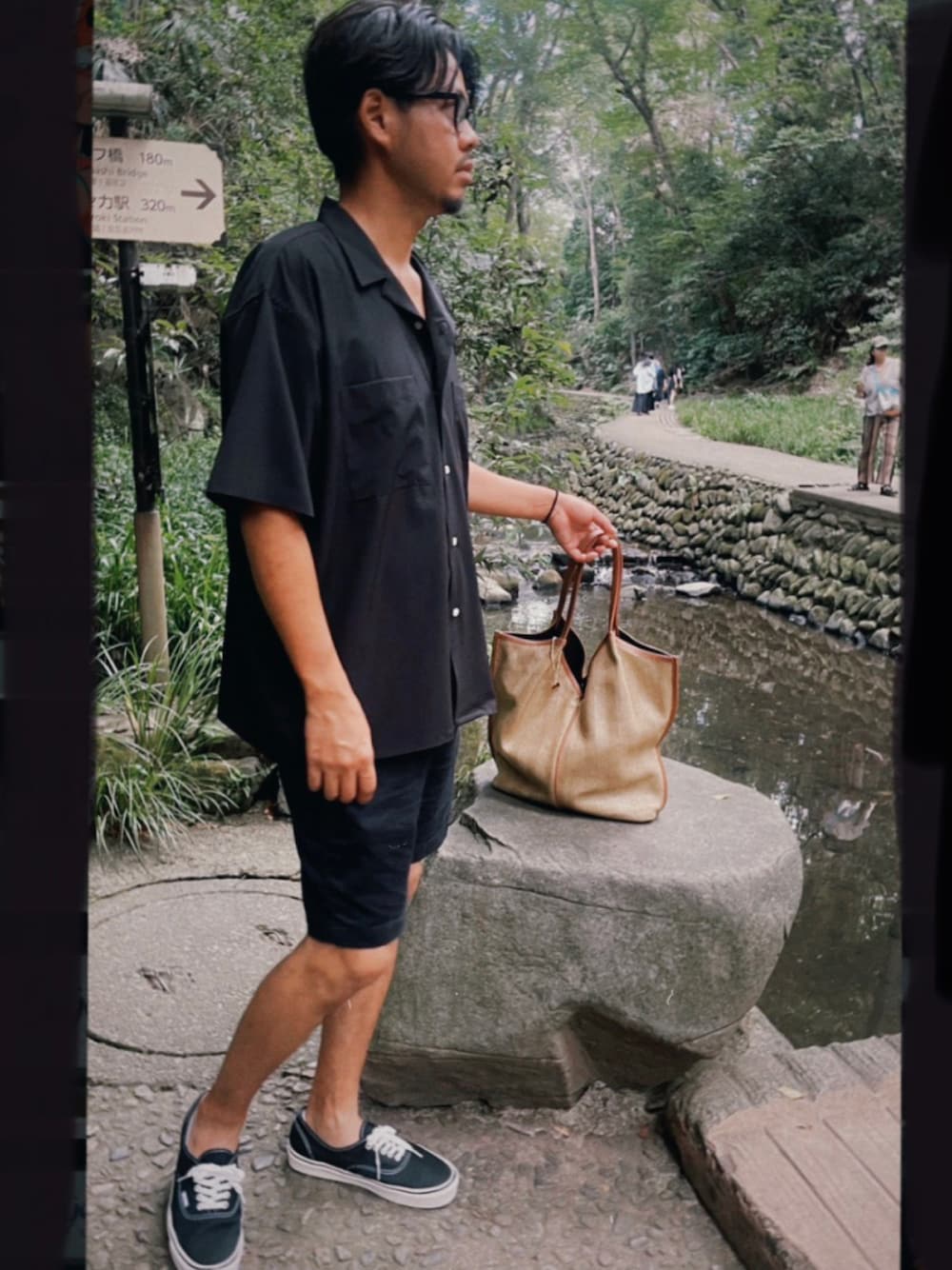 ブラック系のスニーカーを着用したメンズの秋コーディネートの1枚目の写真