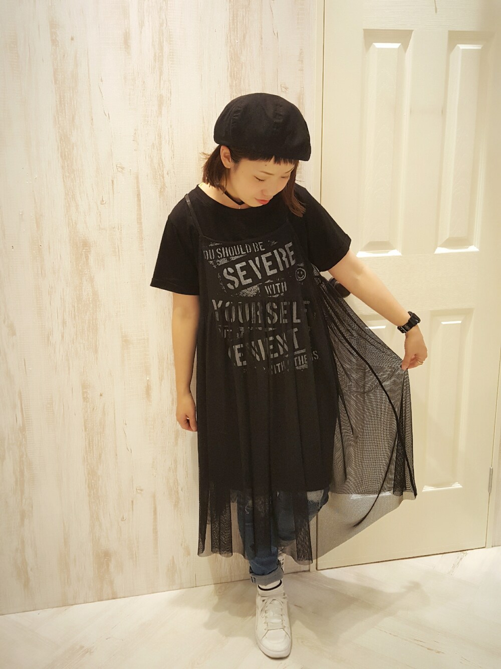 UKIのワンピース「メッシュセットワンピ」を使ったコーディネート