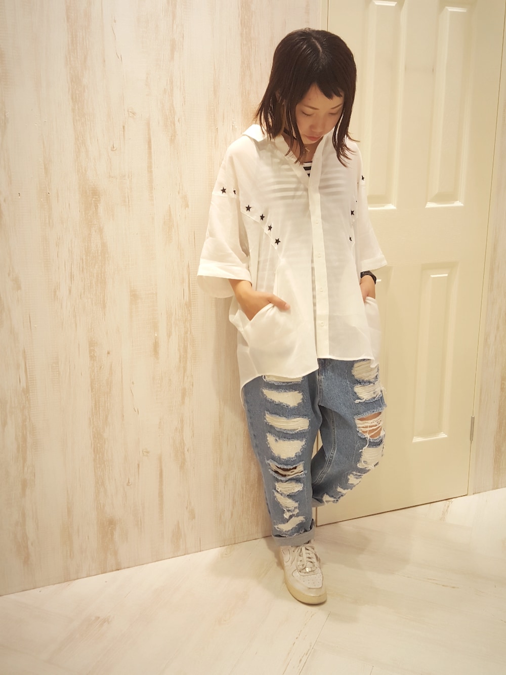 可愛すぎるシャツが入荷したーーーー\(♡~♡)/ スターの刺繍と大きめのポケット!! シャツにポケットって珍しくないですか?^^* 形もデザインも全てドストライク!!!! シャツが生きるのはやっぱりデニムですよね♡ シャツ×デニムのラフさが好き( *°∀°* )