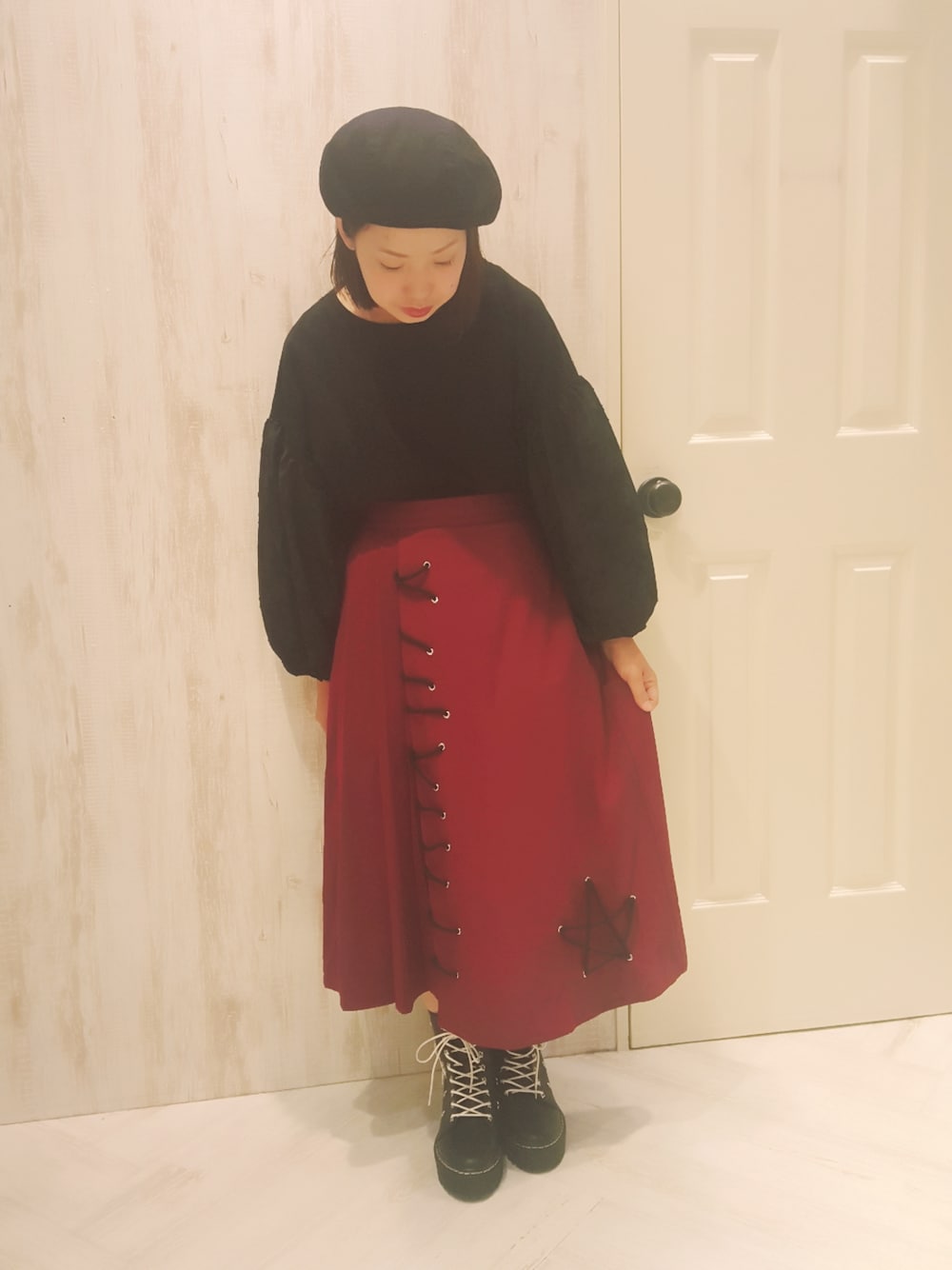 星たくさんコーデ。 分かりにくいけど…トップスの袖も星柄☆ スカートの裾にも星☆ そして、ブーツにもスカートおお揃いの星が☆ どんだけ星~ってくらい星がたくさん( *°∀°* )
