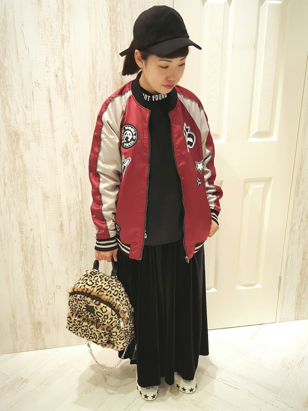【ZOZOTOWN 10/6(木)13:00〜OPEN!】 スカジャンとベロアパンツのコーデ。 どっちも今年はGETしたいアイテムですね!! ブラックにボルドーのスカジャン&レオパードリュックでパンチをきかせてます♪♪