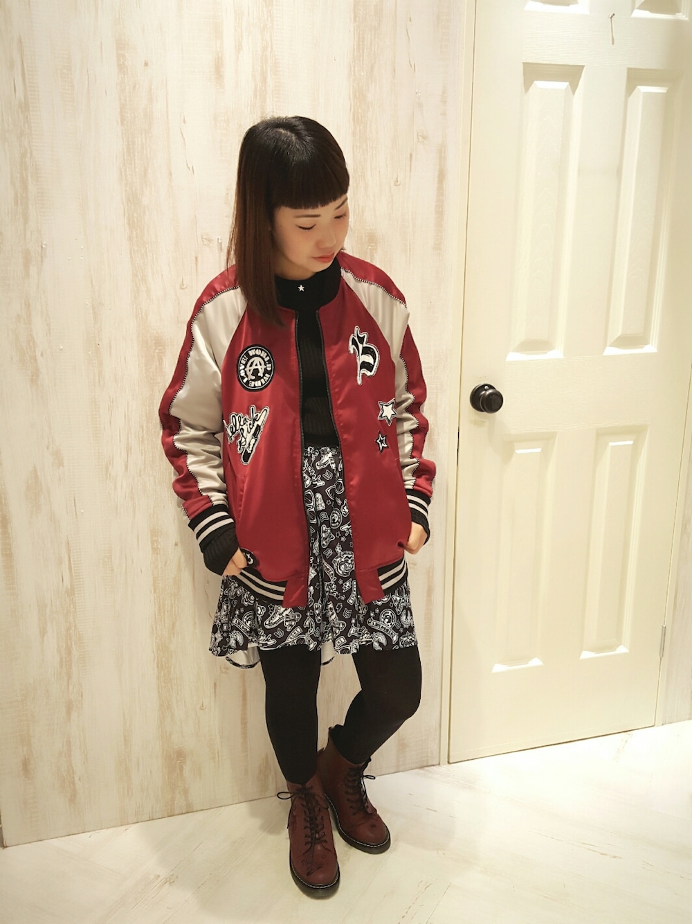 WWL!総柄シリーズ第2弾☆ 今日はスカートとスカジャンを合わせたコーデ♪ スカジャン&スカートはリバーシブルになっているので、気分で着回し出来ちゃいます( ˙ω˙ )/