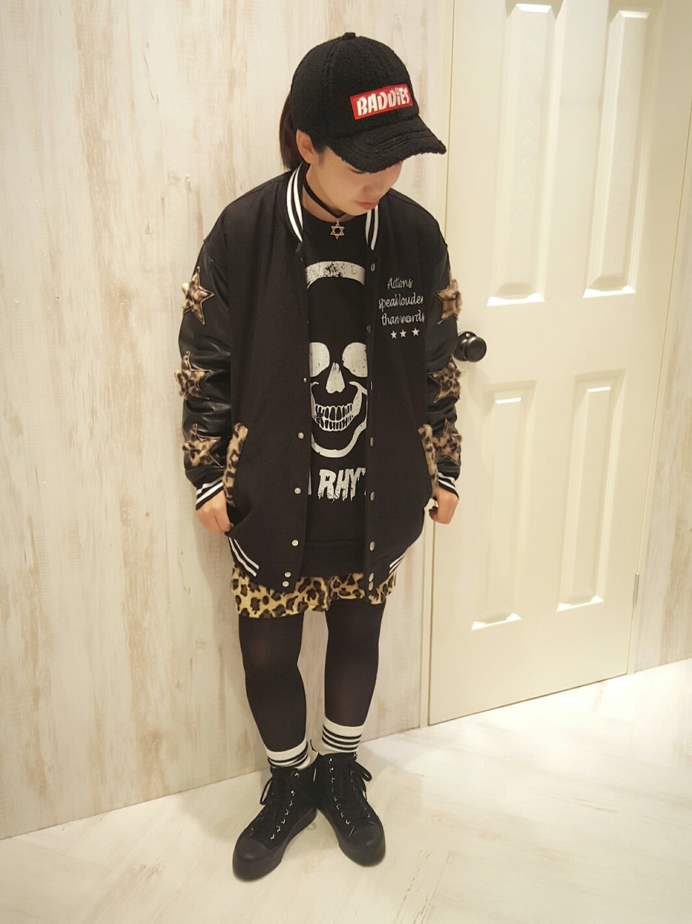 レオパード柄が大好き♡ スタジャンの袖、ポケット部分もレオパードできゅんきゅん(*´ ˘ `) 長めの着丈でゆるっと着れるのもポイント!!