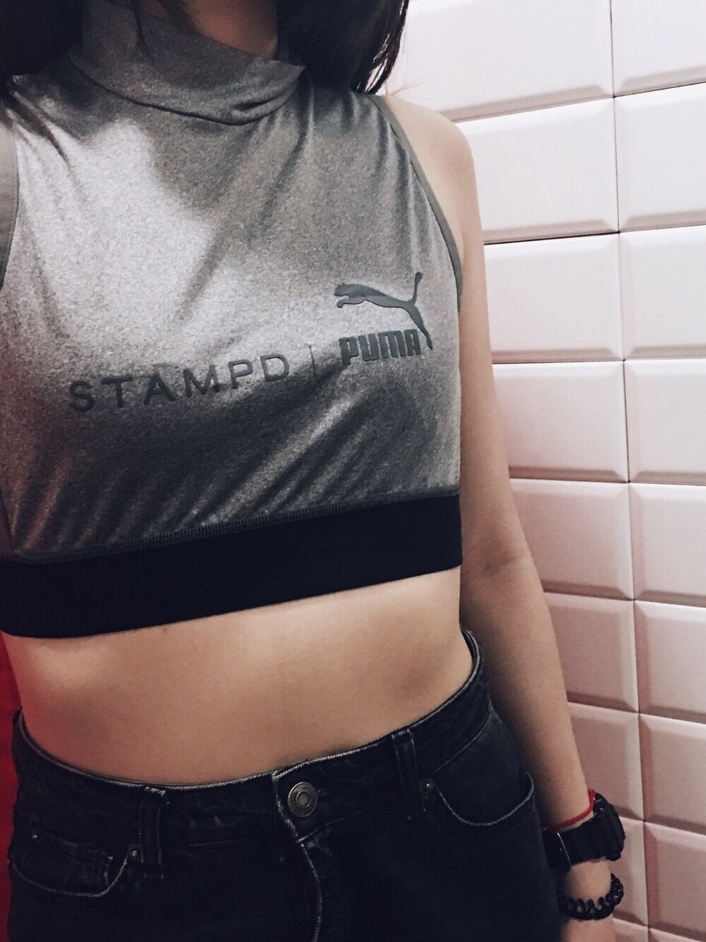 Sporty Puma x Stampd crop top w/ mom jeans☺️