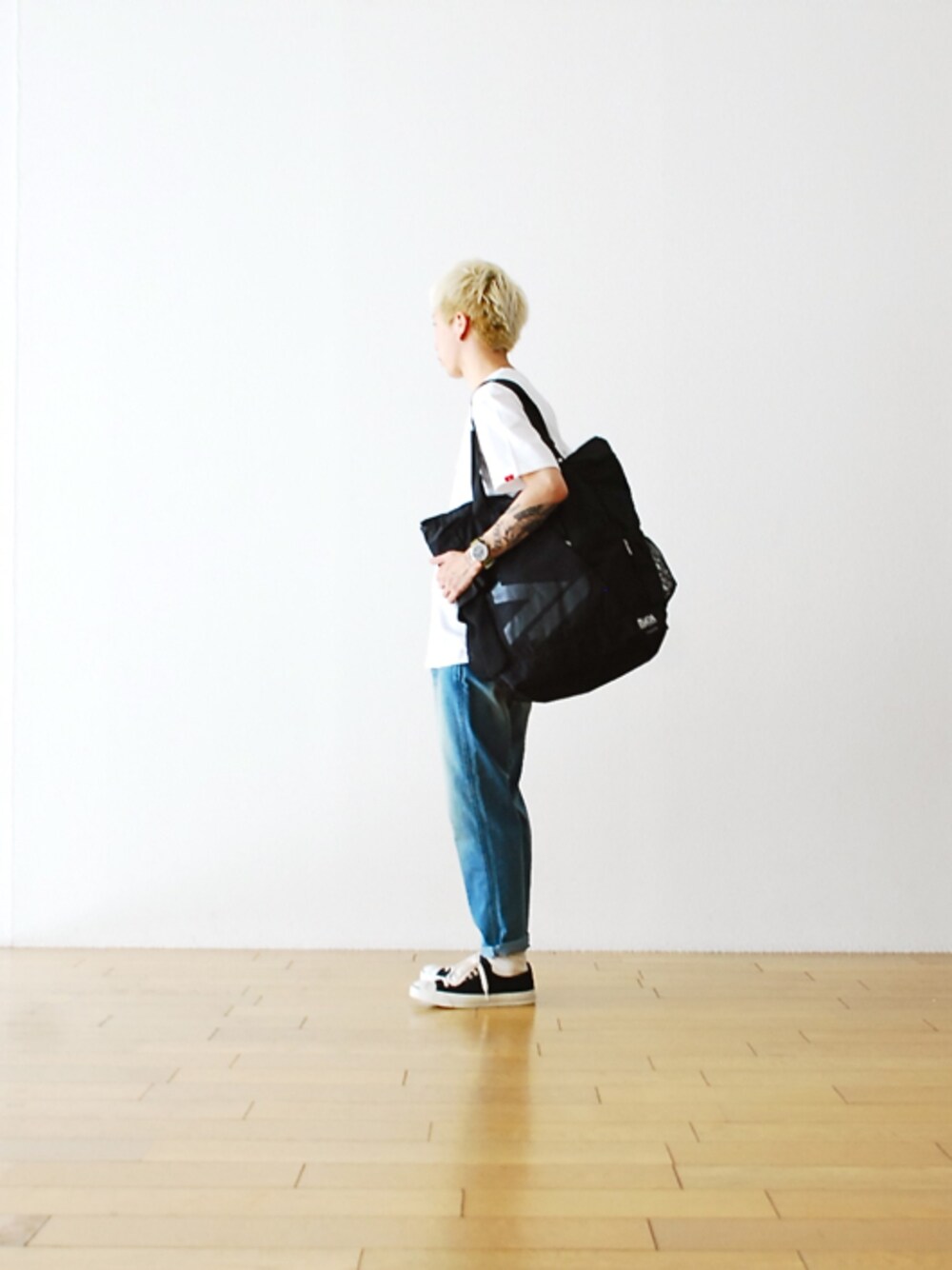 身長 174cm 体重 60kg 足のサイズ 26.5cm(実寸) TEEシャツ SIZE 3 itten. ¥6,264- パンツ SIZE 30 THE NORTH FACE PURPLE LABEL ¥21,060- シューズ SIZE 8.5 (27.0cm) MHL. × CONVERSE ¥15,120- バッグ BACH ¥15,120- 時計 TODD SNYDER × TIMEX ¥17,280-