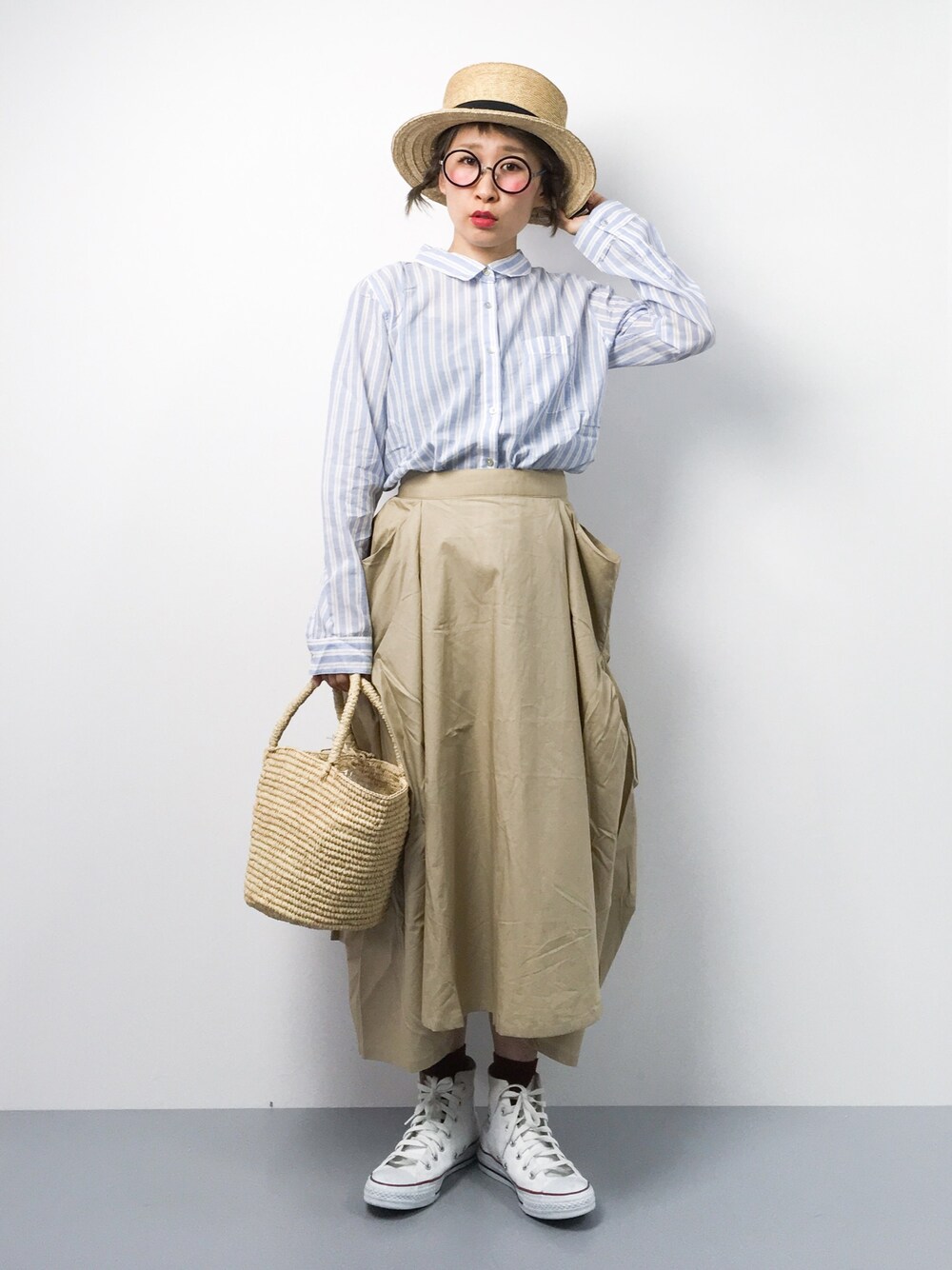 ひいこのかごバッグ「【le voyage en panier/ル ボヤージュエンパニーヤ】 MINI CANCUN TOTE:トートバッグ」を使ったコーディネート