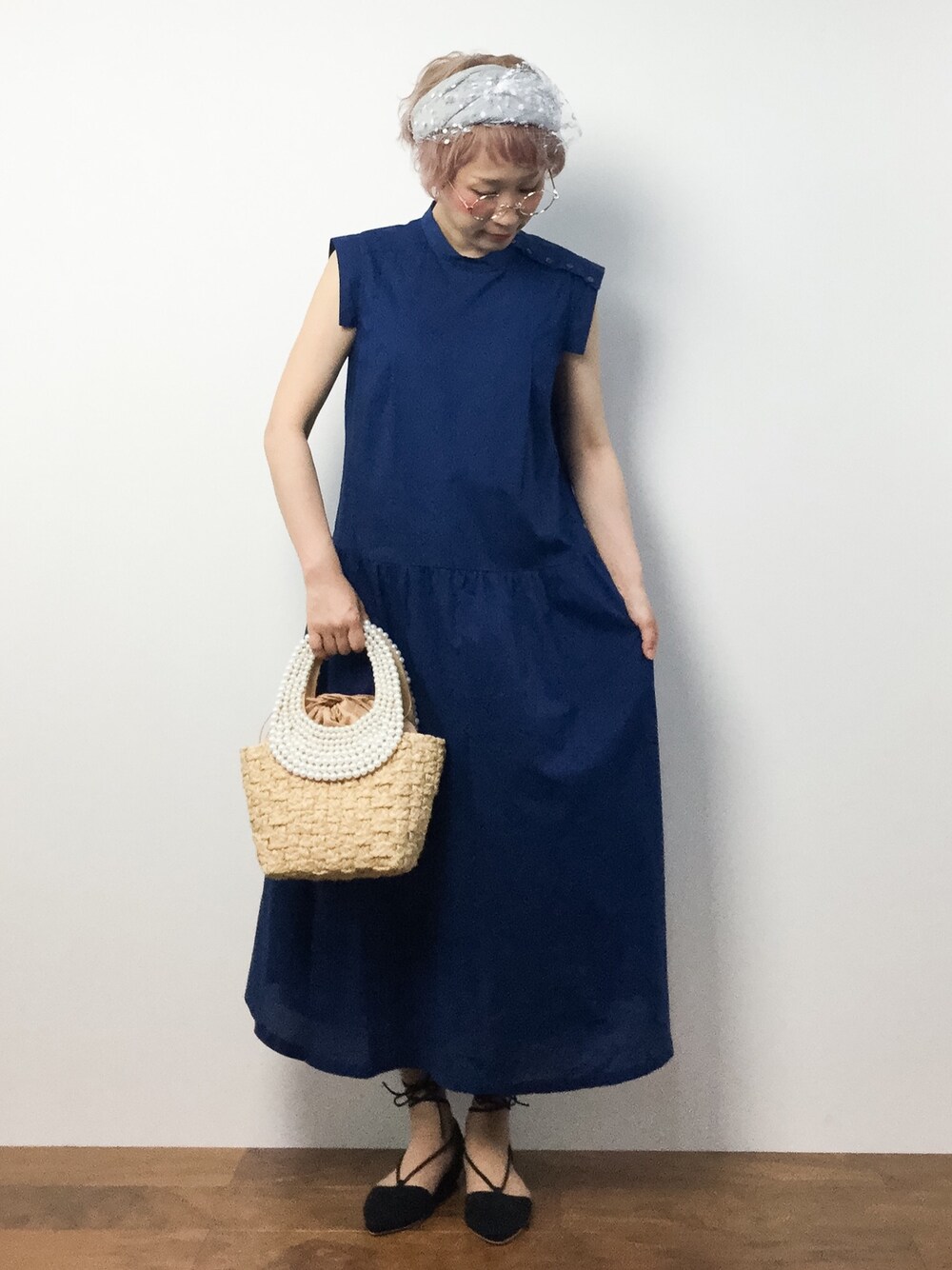 ブルーワンピースコーデ