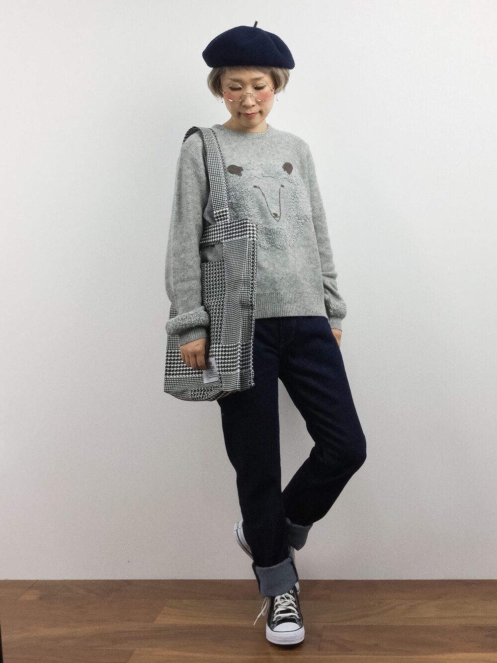 ひつじニットカジュアルコーデ