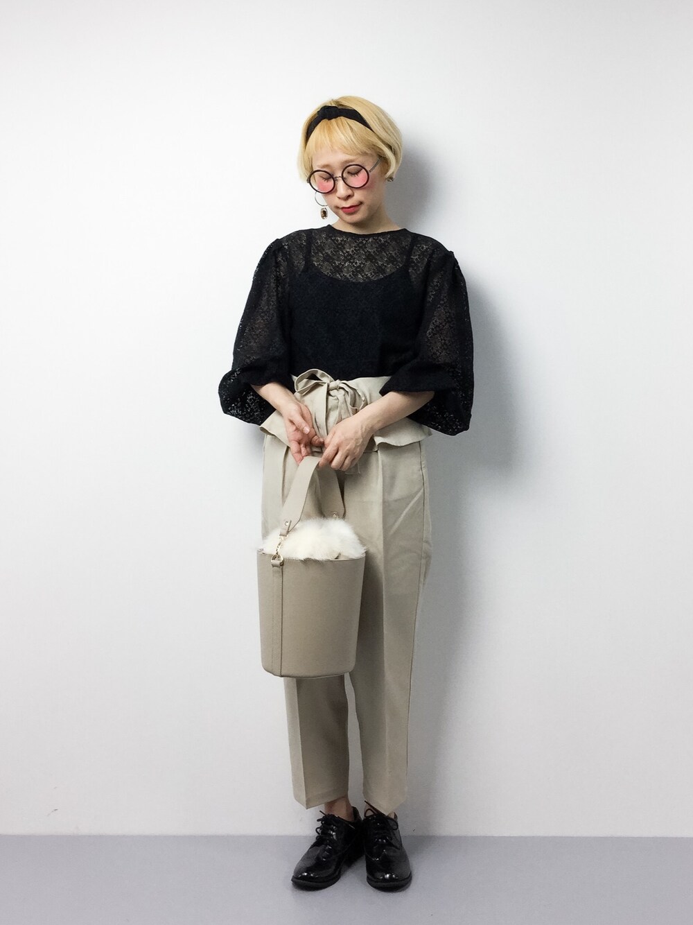 ひいこのその他パンツ「【GISELe4月号掲載】フロントリボンウエストゴム入りポケット付きペプラムテーパードパンツ」を使ったコーディネート