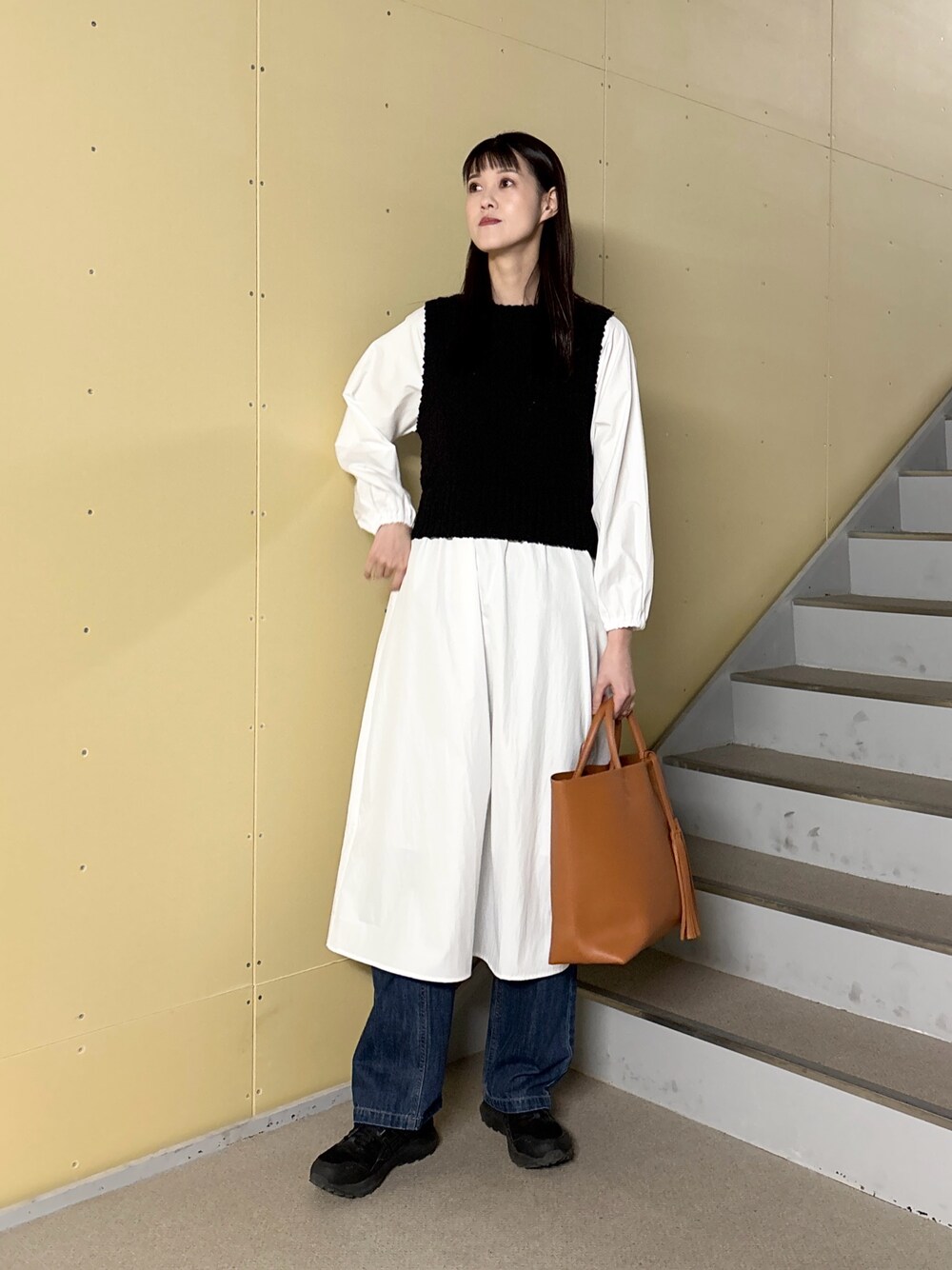murayama(DOORS グランエミオ所沢)のワンピース「ニットベストレイヤードワンピース」を使ったコーディネート