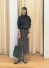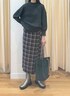 ✔️フリンジチェックラップストレートスカート 綺麗な色が目を惹くカラーチェック生地が特徴的なラップ風のスカートになります✨ スッキリとしたストレートのIラインですが後ウエストをゴム仕様にし、ヒップにも程よいゆとりを持たせているためタイトすぎず体型が響きにくいシルエットです! 着丈は結構長めです。身長170cmでこのくらいのしっかり丈になります。