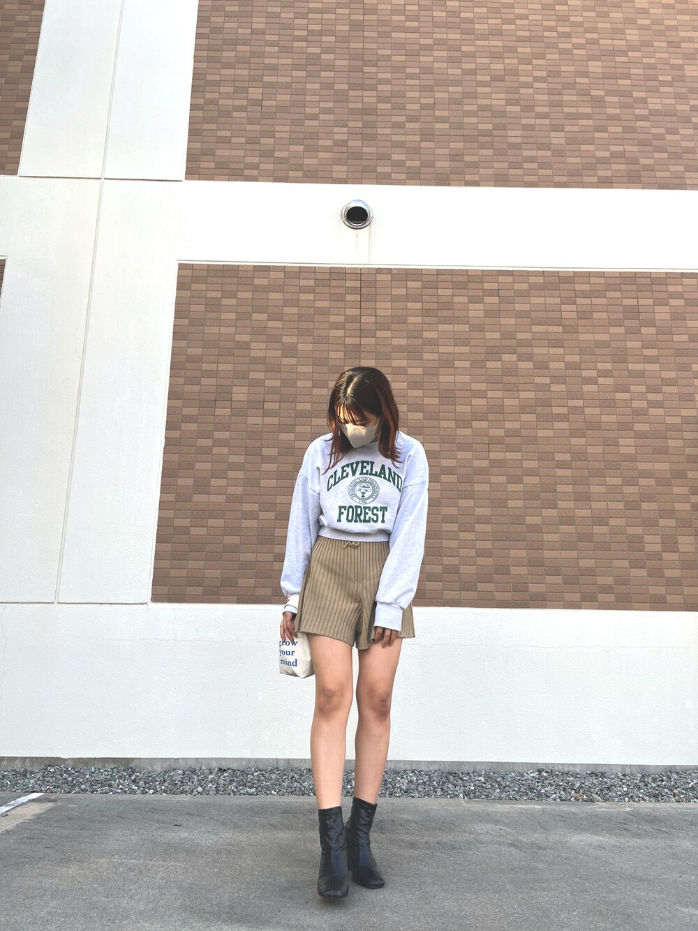 ニットのショートパンツが可愛すぎる🫶🏻 骨格ウェーブなのでクロップド丈のものと合わせました🌼 アウターはSLYさんです!!