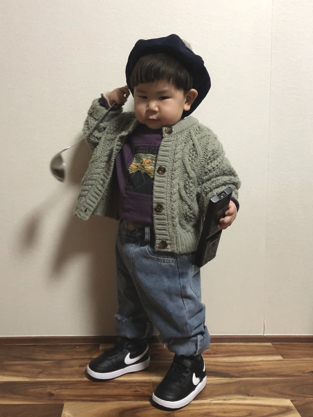 #今夜はナベ隊 やっと撮れました😂 かんちゃん♡よぉちゃんお仲間お願いします🍲❤️ うちは今、食材の宅配サービス🚛を使っているので(お任せのやつ)参加できないかも〜と思っていた所に、ほうとう鍋セットが🤩✨ 最高のタイミング❗️と思ったけれども特にエピソードもこだわりもなくふつうにおいしく食べ終わってしまったので笑 最近は食べてないけど昔好きでよく食べてた鍋を紹介します🍲 その名も『赤から鍋』ですっっ🍲❤️ 程よい辛さで(たぶん3番を食べてた気がする)〆のうどんが最高なんです❗️ 冷食のコシのある讃岐うどんを入れるのだけどもうこれがおいしくて😍 〆のうどんを食べるために鍋してたかもしれません笑 画像を小窓に貼りました🍲 見てたら食べたくなってきた〜 でも、おチビがいるとなかなか辛い鍋って食べられないですね… ちなみにコーデについても少しだけ…✏︎ ボンボンつきのベレー帽がとっても似合うかんちゃんに憧れて購入した帽子です🥰 なのでナベ隊でデビューさせたかったのです❤️ かぶり慣れてないためすごい嫌がりようで💦 目つきも若干鋭くなってます😂 ベレー帽かぶってオタマ持ってる唯一の写真です… オタマブレてるしなぜかリモコン持ってるけど… あとは、すごくお気に入りの花札みたいな柄のパープルTに同じくすごくお気に入りのダメージデニムに同じくお気に入りでサイズアウト寸前の淡いグリーンのケーブルニットカーデを合わせたコーデです🎴💜👖💚 ダメージデニムって一丁前感がたまりません🤤 ロンTとデニムはこの冬新規購入したものだけど、ヘビロテの予感😍❤️ めっちゃ長文ーー😳‼️ 最後まで読んでいただきありがとうございます☆ ♡、📂、フォロー、ご覧いただきありがとうございます☆ 仲良くしてもらえると嬉しいです🥰