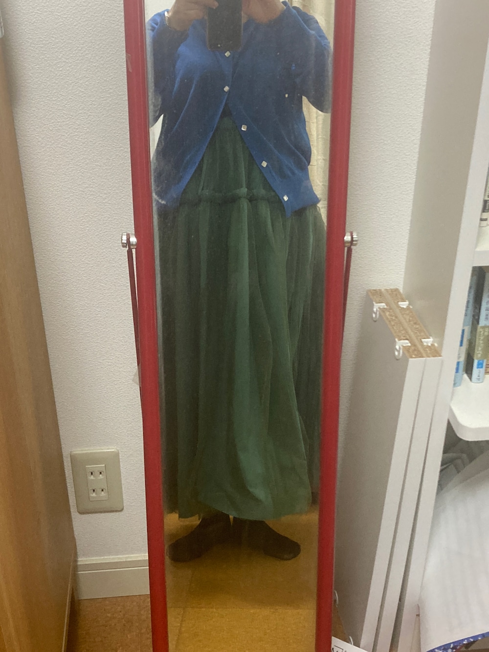 トップス下は黒の長袖。