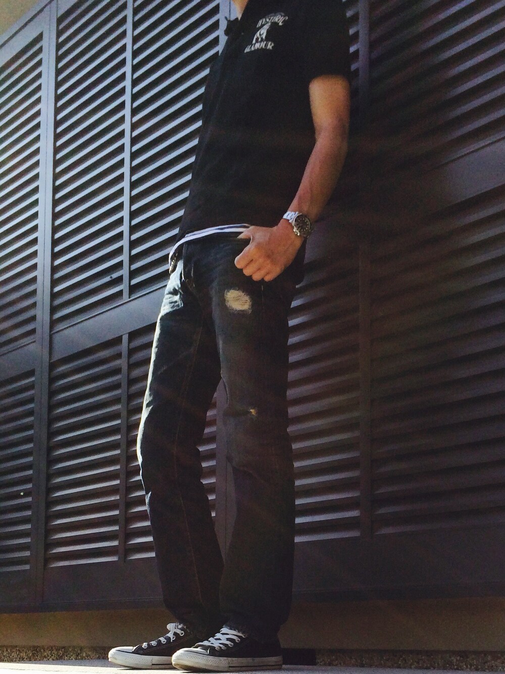 Michiのデニムパンツ「RW CLASH加工デニムストレートPT」を使ったコーディネート