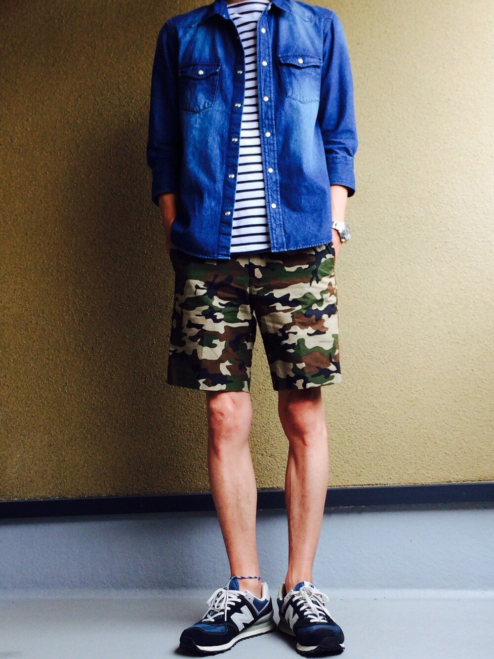 カモフラとボーダーって柄×柄やのに、何か合うなー。 膝上ショーツ抵抗なくなってきたけど、座ると太ももが露わになるのが^_^;笑 真っ白のスニーカーが欲しい!