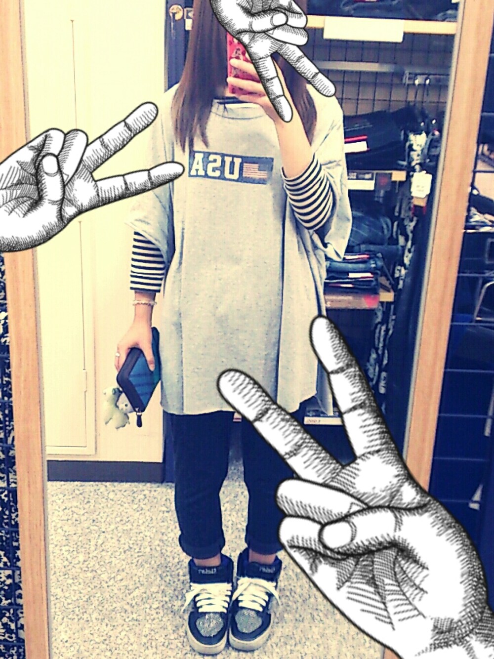 古着のTシャツはサンキューマートで 袖や裾は自分で着やすくカットしたよ