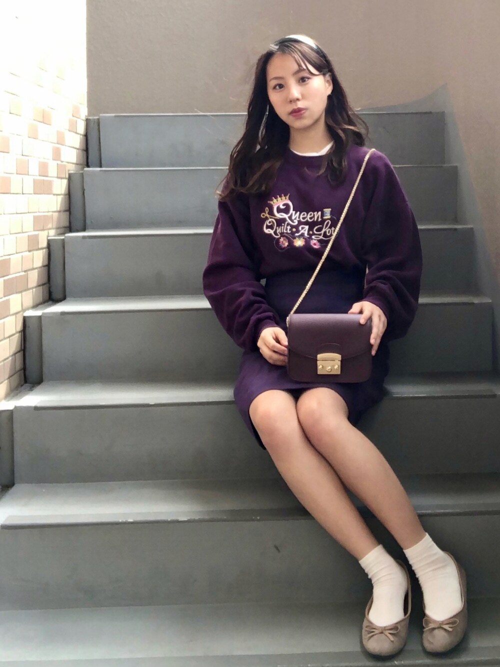 . 頭にカチューシャを載せてよりアメリカンガール風に . 重たくなりすぎないよう間に白を挟んで
