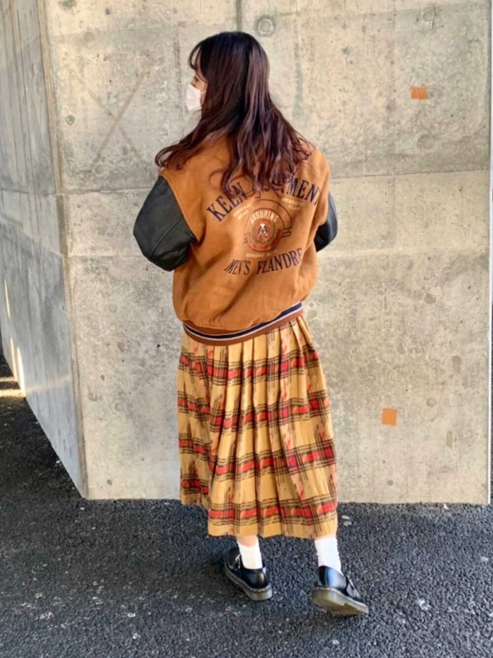 . 全身茶色で統一⭐︎ 腕の黒が浮かないように靴は、あえて黒で チェックに入っている赤がまたいいアクセント . カバンは、白ではなく黒か茶色の方が良かったなぁと反省中