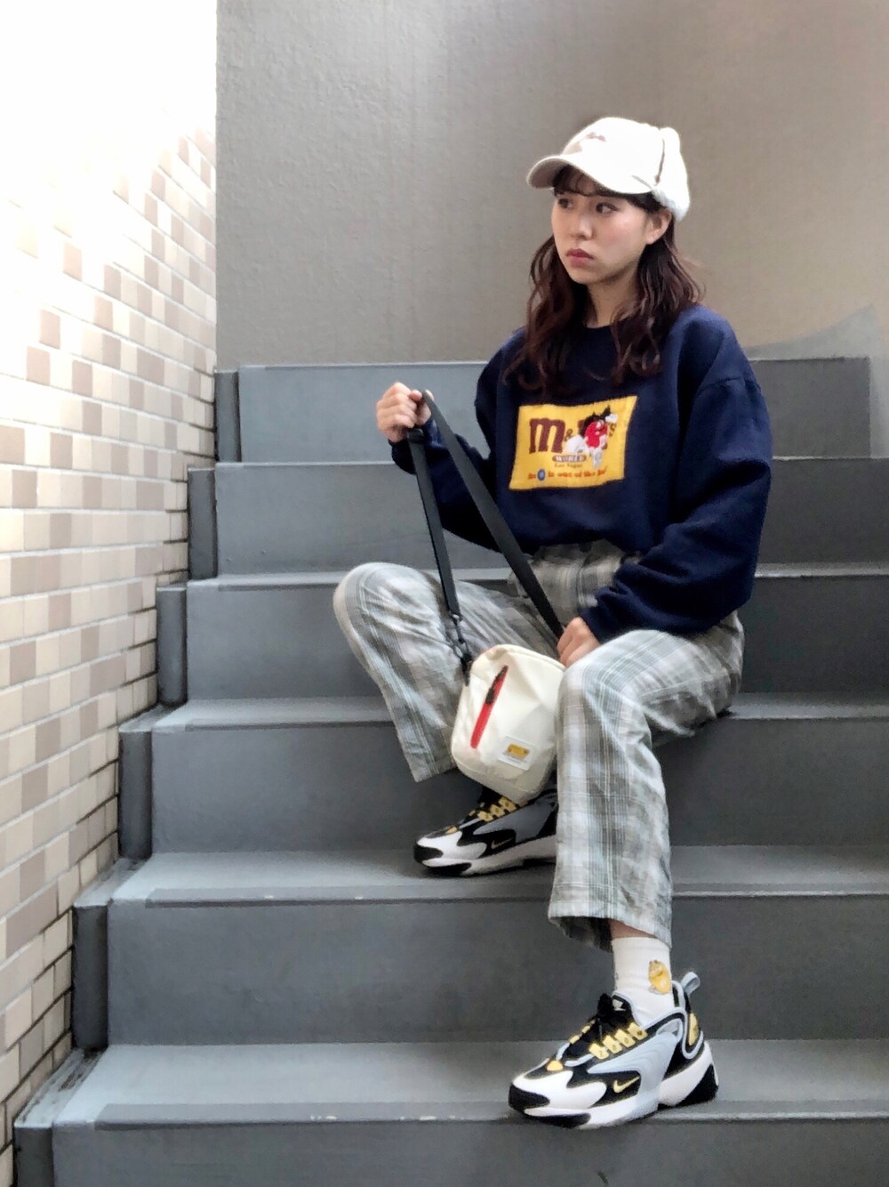 . ちょっとギャグ受けなコーデ 大好きなm&m'sのトレーナー! 靴下にもm&m'sがいるの! たまにズボンから見えるm&msが可愛いでしょ? 黄色がアクセントになるように色々なところに散りばめましたのよ