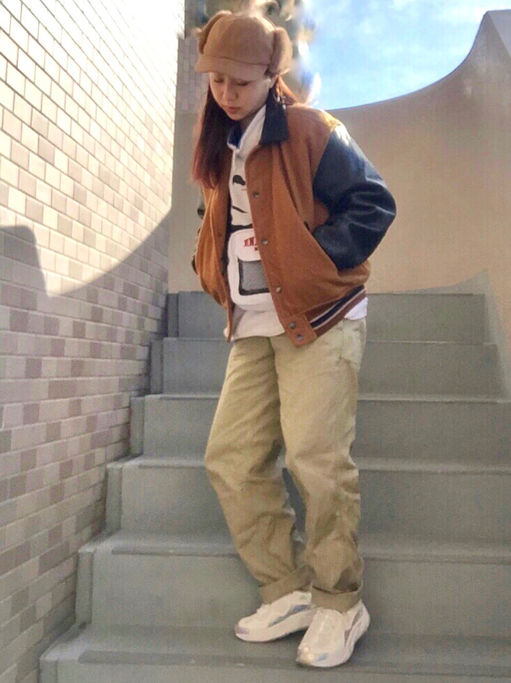 . 地元でちょっと遊びに行くわのコーデ。 パーカの絵柄がクマだから茶色で合わせてみたよ! フライトキャップをお耳に見立てて👂 たまにはゆるゆるなコーデもいいよね! 髪の毛はあえてストレートで大人っぽく🧑 あっそういえばこの絵、クマじゃなくてコアラ