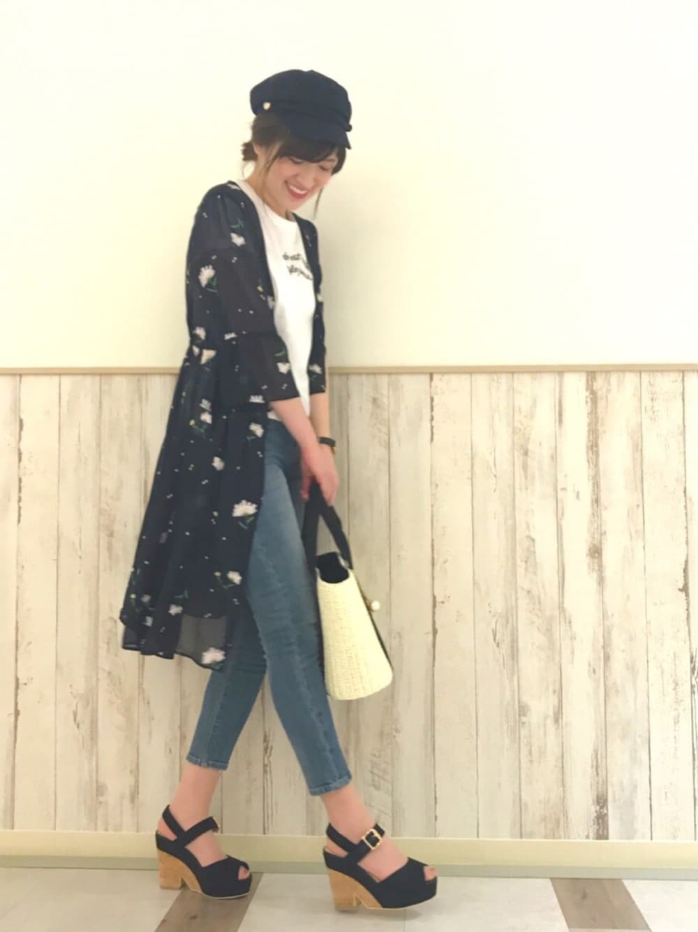 うおchanのシャツ/ブラウス「シフォン花柄刺繍ガウン」を使ったコーディネート