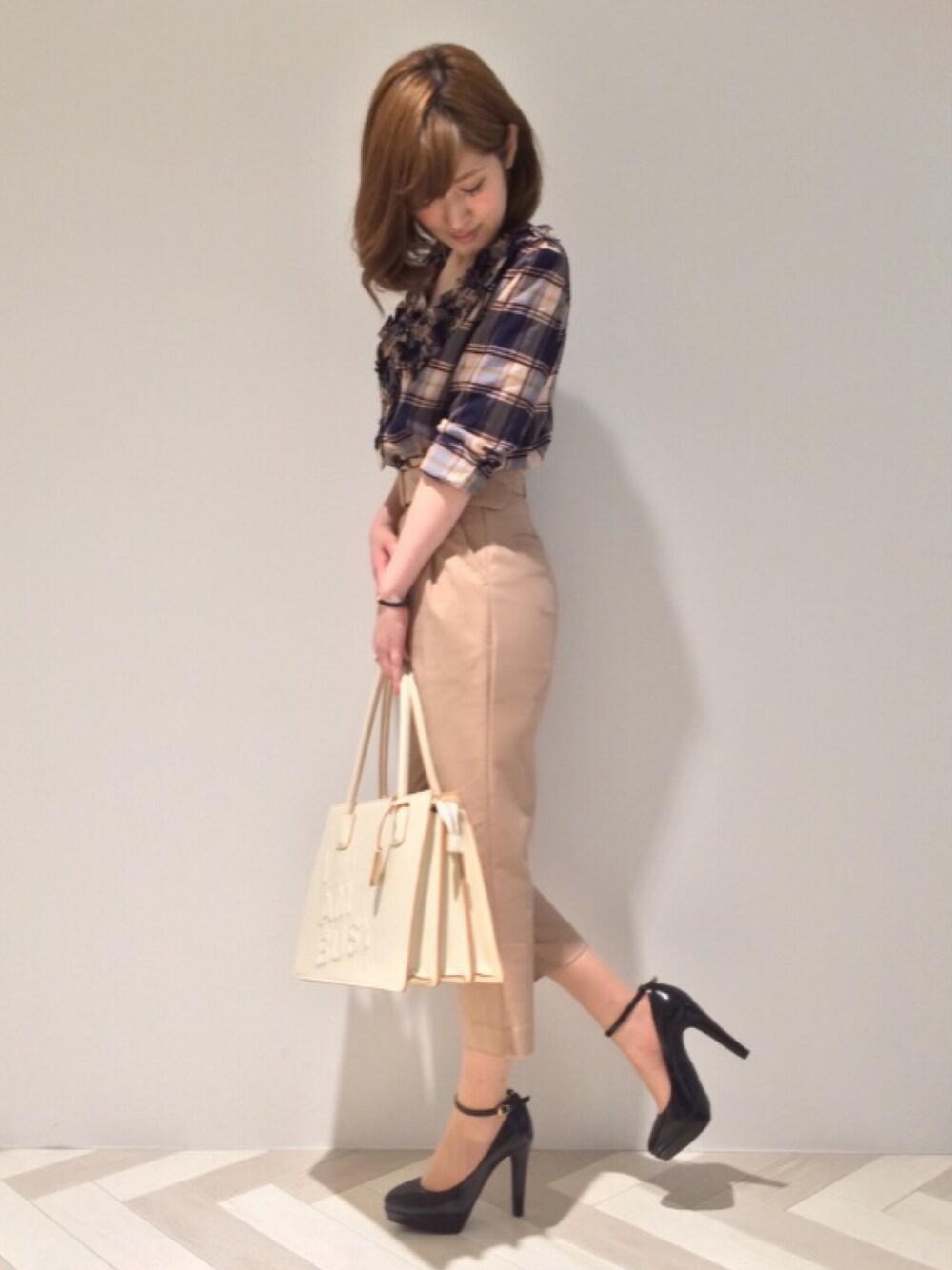 うおchanのシャツ/ブラウス「フロントフリルチェックブラウス【矢野未希子さん着用】」を使ったコーディネート