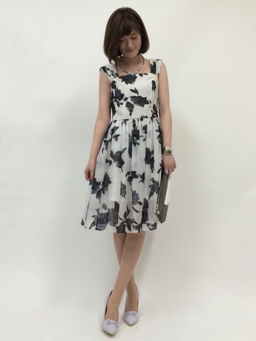 うおchanのワンピース「スパンオーガンジー花柄切替ワンピース」を使ったコーディネート