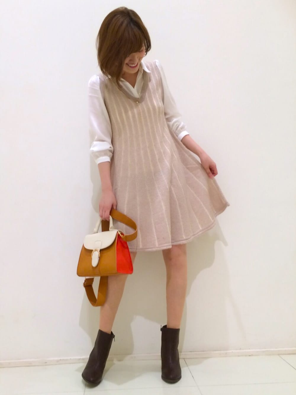 うおchanのワンピース「【CanCam11月号掲載アイテム】袖シフォン切替ニットワンピース」を使ったコーディネート
