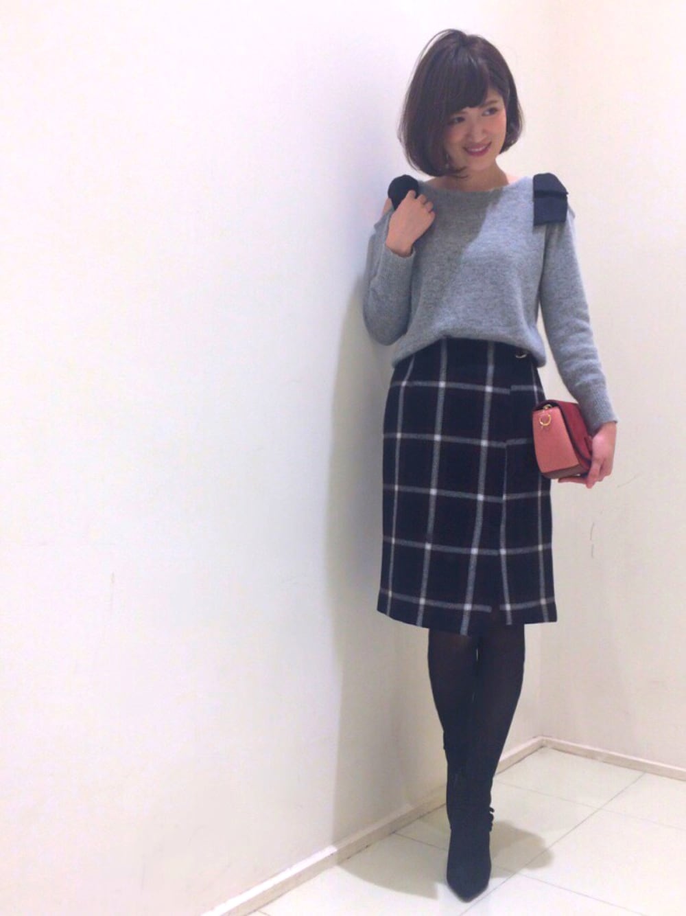 秋冬の定番チェック柄も 巻スカート風&スリットの タイトスカートでおとなっぽく💓 みなさまいつも見ていただいて ありがとうございます(*´˘`*)♥ 31filles blog♡ http://s.ameblo.jp/31filles/