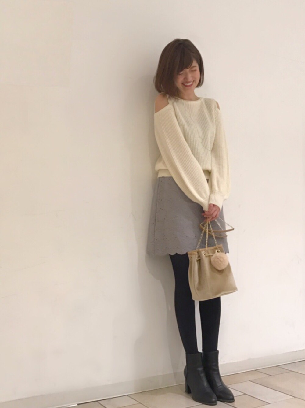 うおchanのニット/セーター「畦編みオープンショルダープルオーバー」を使ったコーディネート