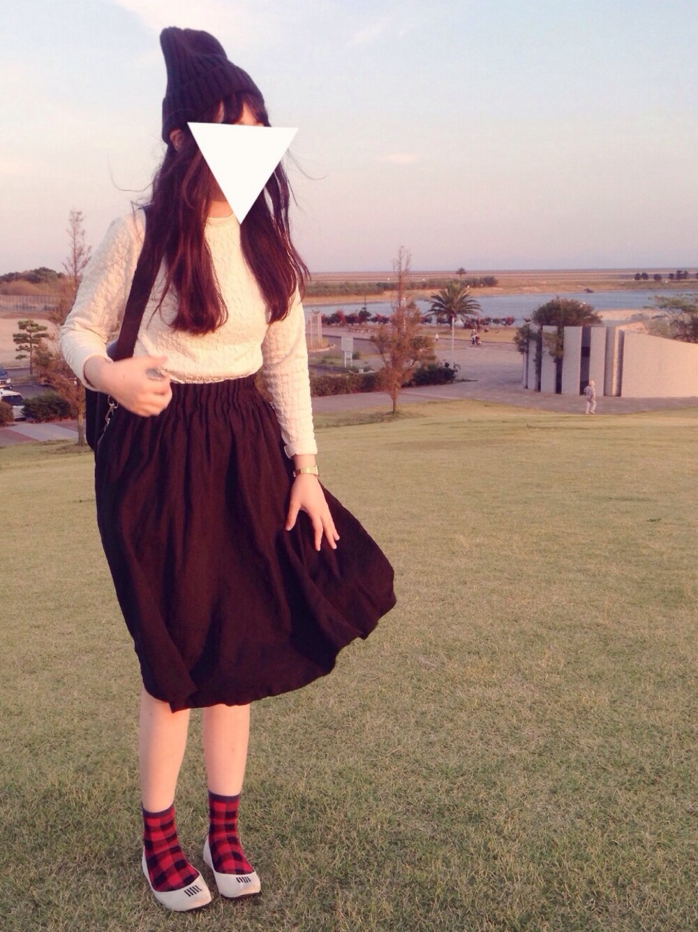 仕事が忙しくて、仕事着ばかりの毎日、、久しぶりの私服が嬉しいです(*_*) 赤チェックの靴下がポイントです。