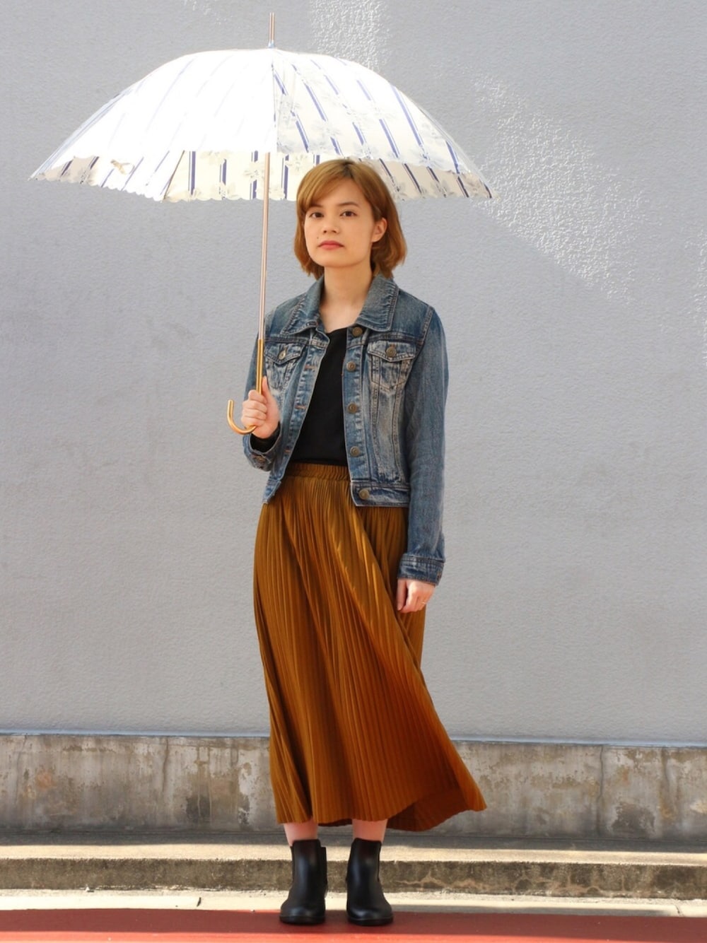 Wpc.-officialの長傘「【特別価格】雨傘 ストライプフラワー」を使ったコーディネート