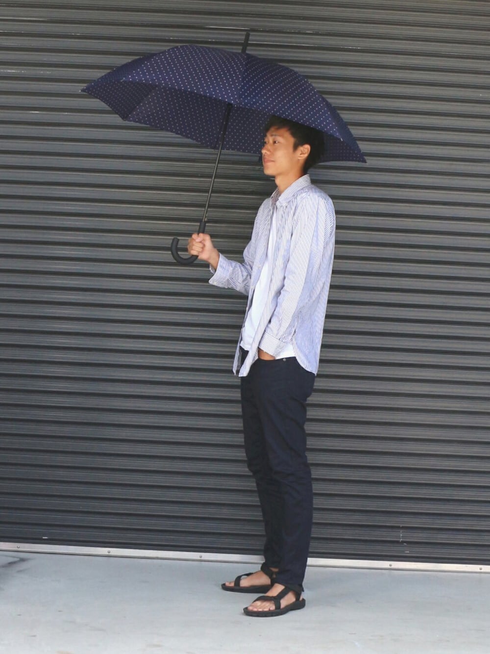 ・w.p.c雨傘 Wpc.ダイヤモンドドット \2,300 こちらはユニセックスタイプになっているので、 男性が持ってもこれぐらい余裕があります! (女性向けは大体58㎝、こちらは65㎝です。) 傘にまで気が行き届いていると、大人で素敵ですね☆ 私服にもスーツにも合うような柄をたくさん用意しています! もちろん女性が持ってもシンプルでかっこいいです(^o^)