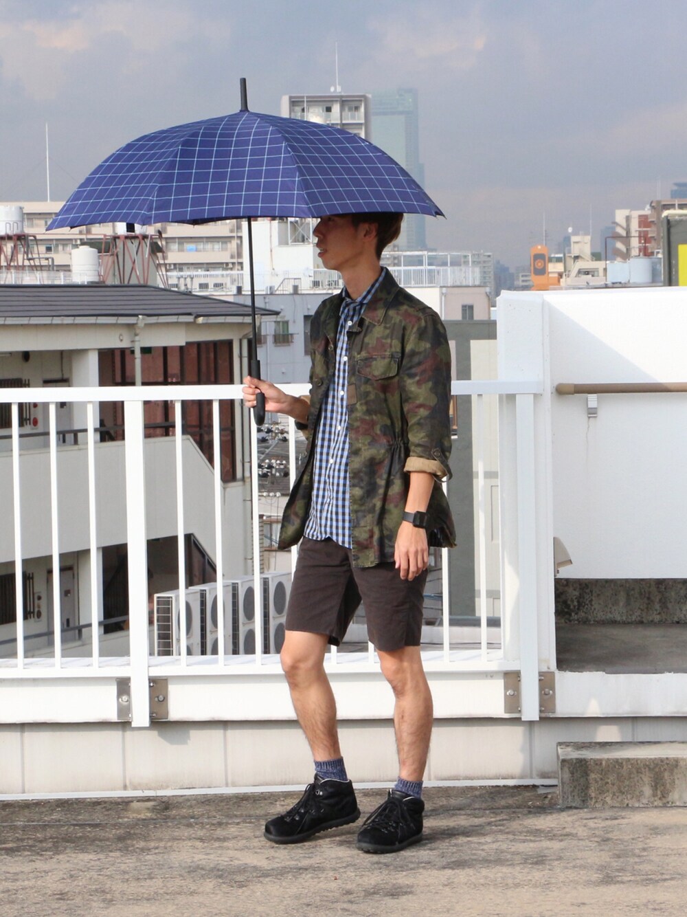 Wpc.-officialの長傘「Wpc.UNISEX雨傘 シングルチェックネイビー」を使ったコーディネート