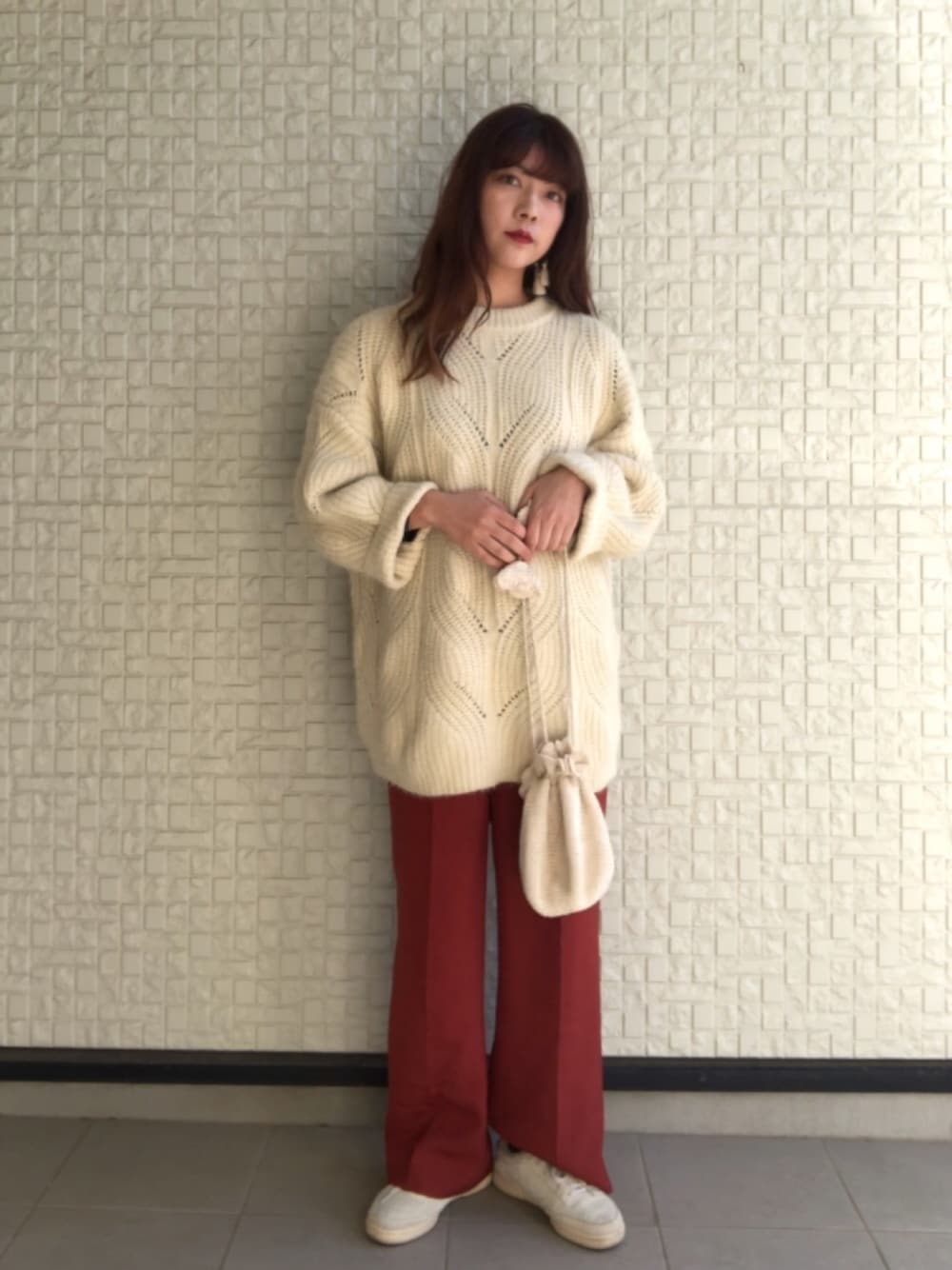 em ○。のニット/セーター「<再入荷>シャギーケーブルBIGプルオーバー」を使ったコーディネート
