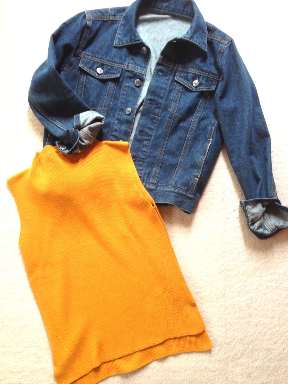 最近のお気に入り❤️ マーキュリーのノースリとデニムジャケット❣️ ノースリはからし色?で首が詰まってるからこの上にジャケット着ちゃえば一気に秋モードに! 秋らしいカラーが目をひきますね😍😎😍 ジャケットはこれちょー可愛いの❤️ 写真では分かりにくいけど 裾にボタンが付いててね、奥の穴に入れたら後ろ姿がフワって!笑フワってなるの‼️😁✨ それが可愛いくて一目惚れで買っちゃいましたw笑💕 これが最近のお気に入りでーす❣️🙋