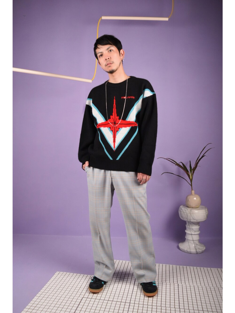オタクっぽいけどジャガード編みで質感の良いニットには綺麗めなスラックスを合わせました。足元はadidasのGAZELLEというモデル(海外モデル)を合わせました。ガムソールがこのオタクっぽいニットにしっくり。大人っぽくmamelonのシンプルなネックレスを。