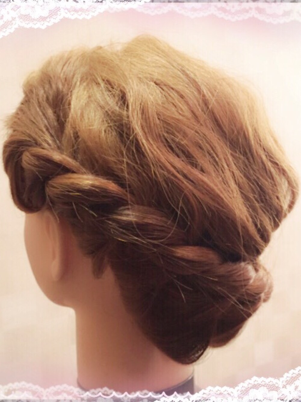 ナミ巻きして、片側からループ編み 反対の耳くらいまでいったら、 毛先までは、三つ編みしてまとめて 止めるだけ! 髪が多い方などは、飾りをさらにつければ、 安定しやすいですょ〜☆*:.。. o(≧▽≦)o