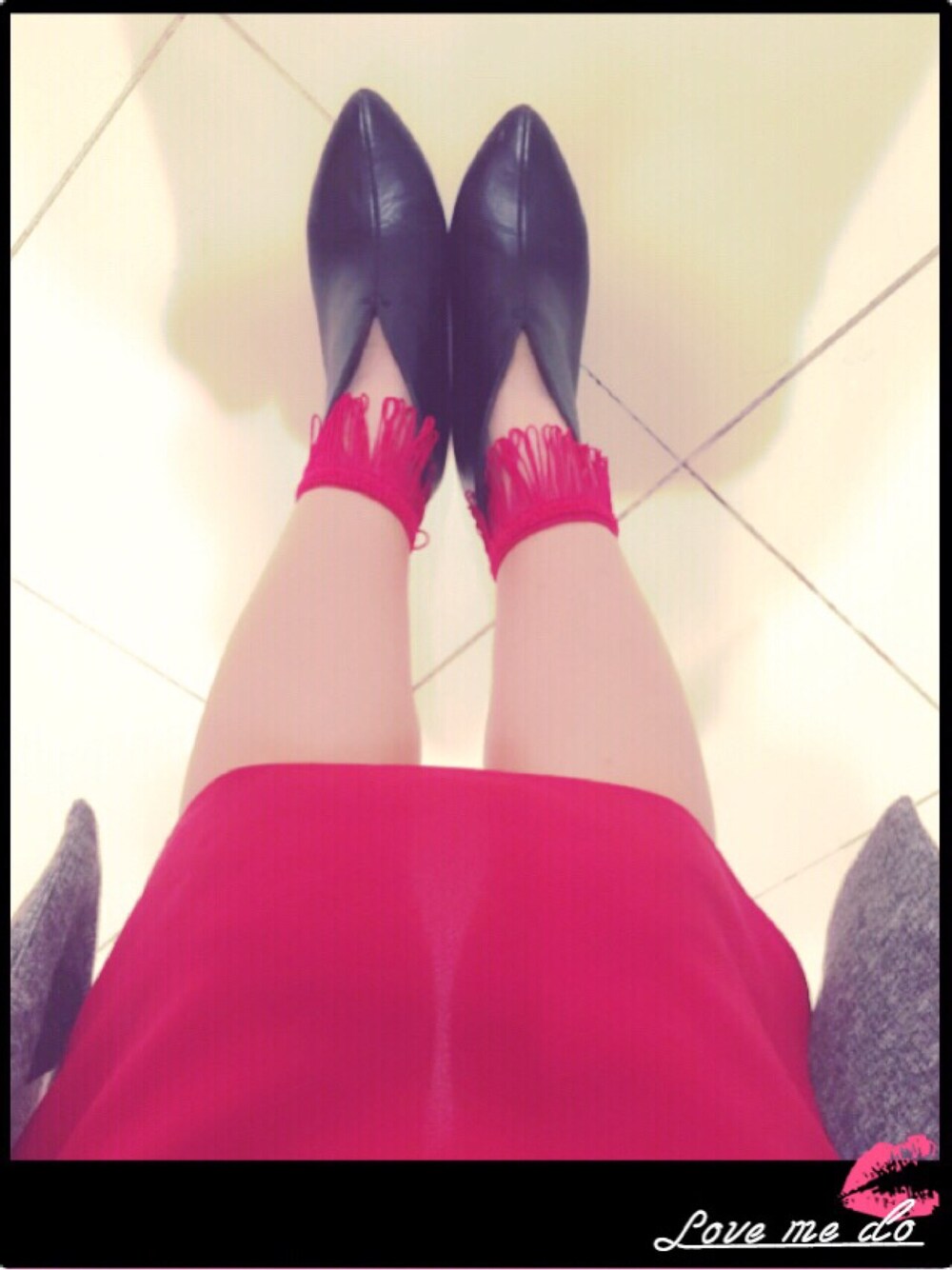こんばんわ!! スケスケ靴下、第二だん!! フリンジなんですよ!! でも、朝、男性の先輩に スペインの踊り子みたいだねーって言われました!! olé!! オッレィ!! 男子には、分からないかな〜 この靴下のかわゆさ!!!